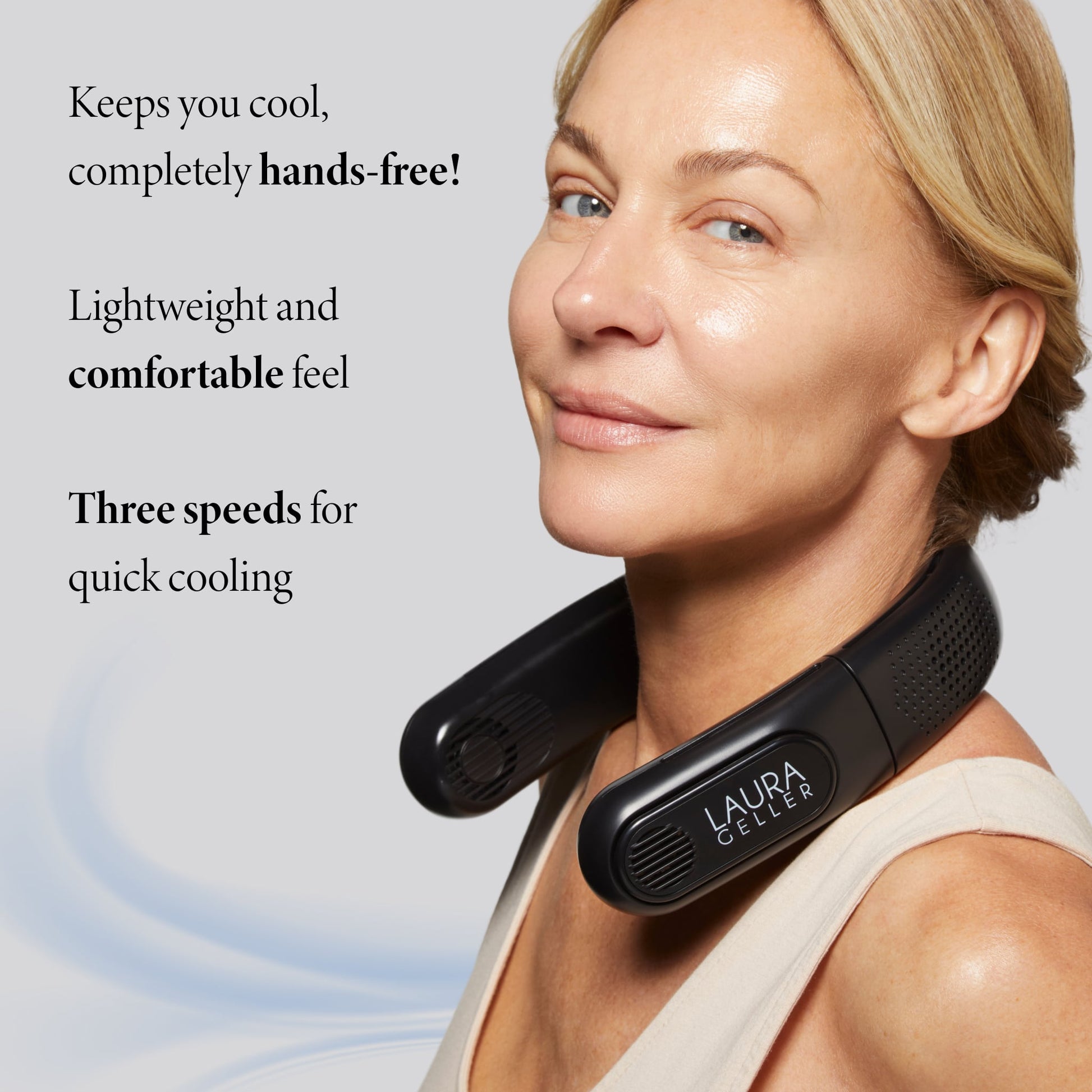 Find some relief! Our hands-free neck fan is perfect for keeping cool on-the-go â€?whether you’re struggling with hot flashes or traveling in warmer locales! Toggle through multiple speeds and adjust to your comfort level.